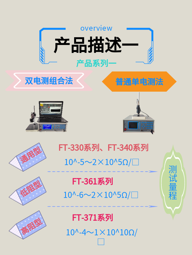 方阻測試新產品為薄膜測試提供機械、電氣兩方面的保護,在寬廣的量程范圍內,使各種電子薄膜能得到準確、無損的方塊電阻測量結果。