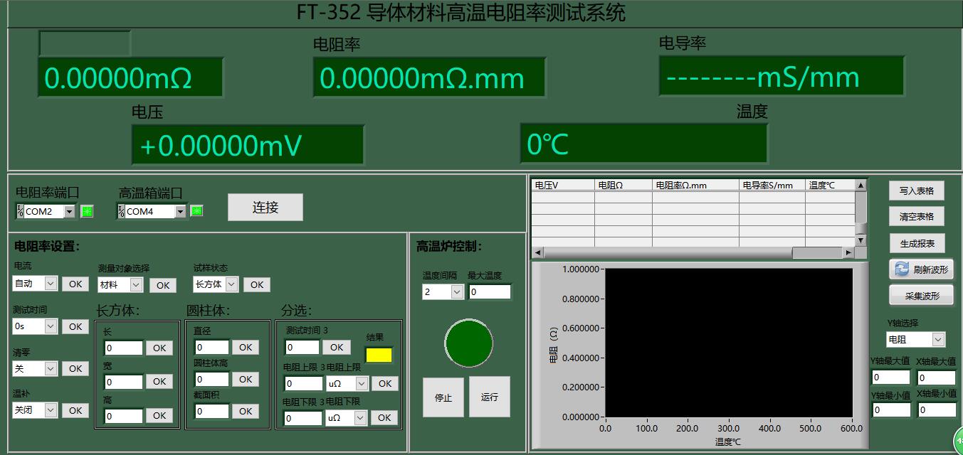 導(dǎo)體材料的電導(dǎo)率對(duì)溫度變化測(cè)量要求,測(cè)控軟件實(shí)時(shí)繪制出溫度與電阻,電阻率,電導(dǎo)率數(shù)據(jù)的變化曲線圖譜,及過程數(shù)據(jù)值的報(bào)表分析.具有氣氛保護(hù)功能.