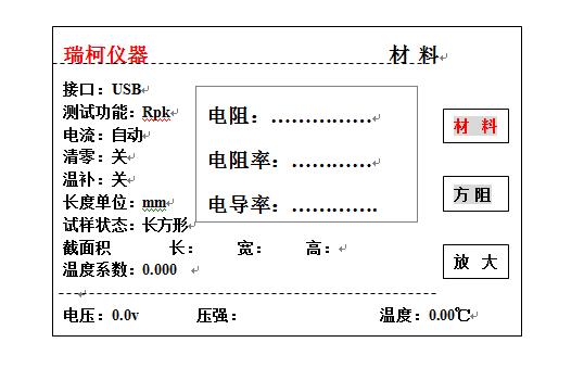 液晶顯示:電阻、電阻率、方阻、溫度、單位換算、溫度系數、電流、電壓、探針形狀、探針間距、厚度 、電導率 LCD: Resistance. resistivity. sheet resistance. temperature. unit conversion.temperature coefficient. current. voltage. probe shape. probe spacing. thickness. conductivity |