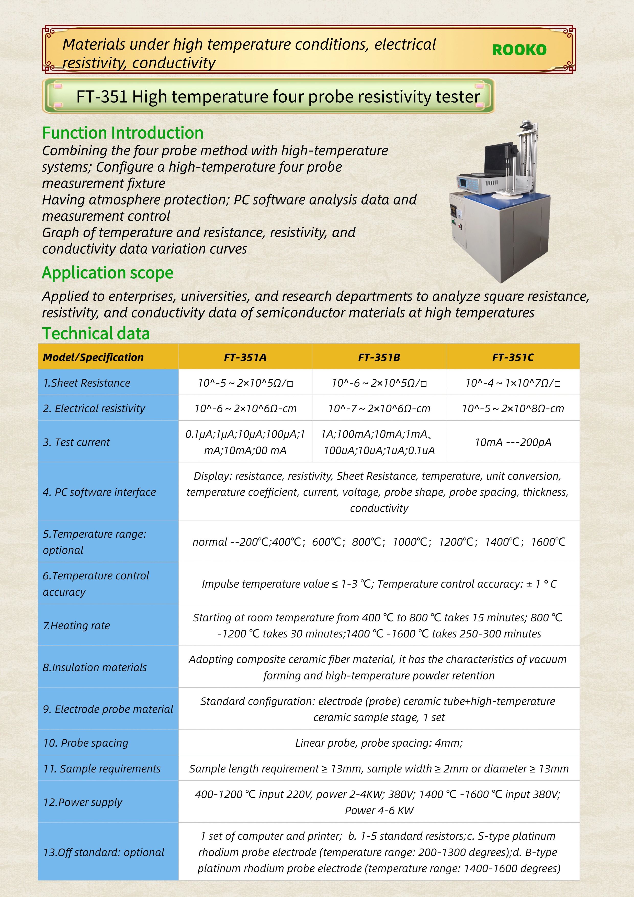 FT-351 High temperature four probe resistivity tester